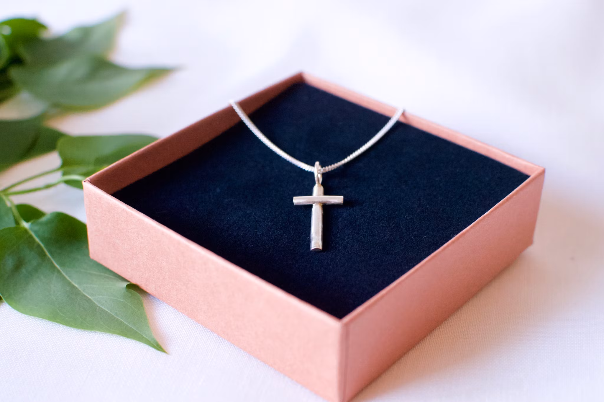 Halsband i silverkedja med 3D- kors med stilrent design i återvunnet sterling silver. Välj kedja mellan kulkedja eller pansarlänk.