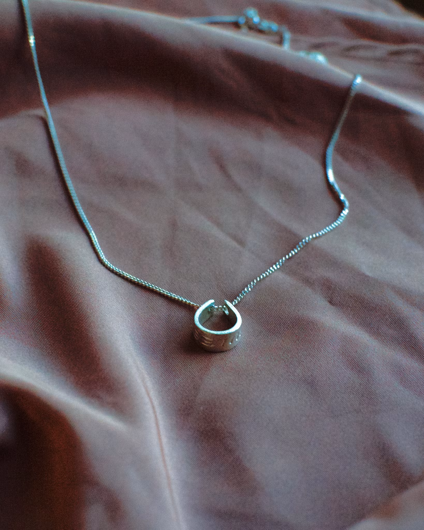 Modernt och minimalistisk halsband med osynligt gravyr på utsidan. Passar perfekt som present till en kille med personligt gravyr. Ange valfri text att gravera in i meddelande under utcheckningen. Material: sterling silver. Mått: 6x1,5 mm.