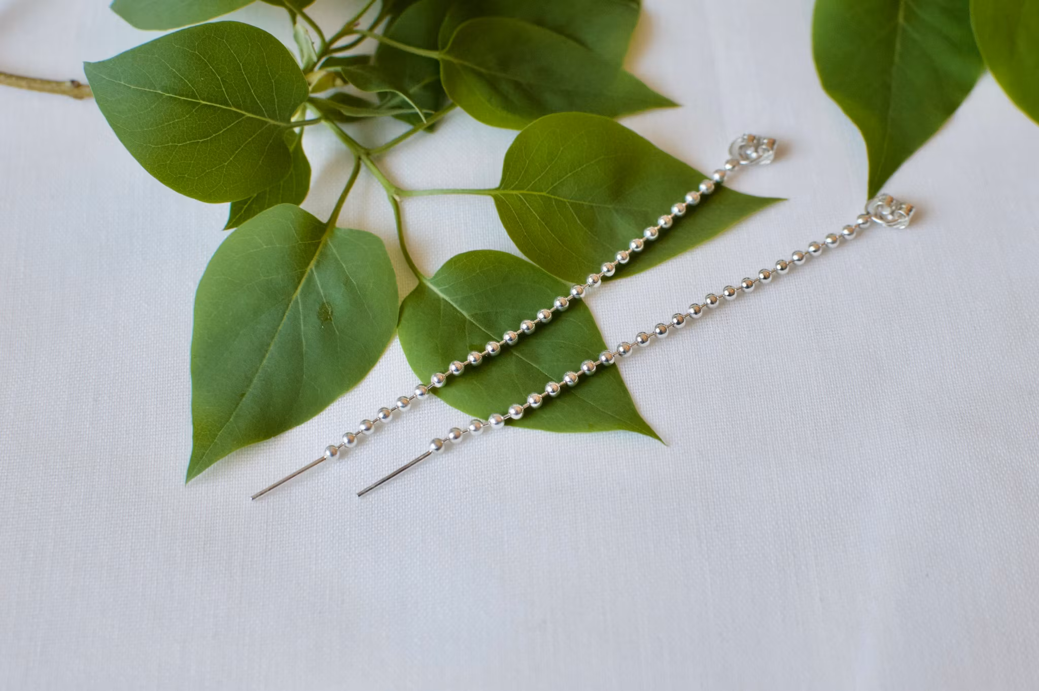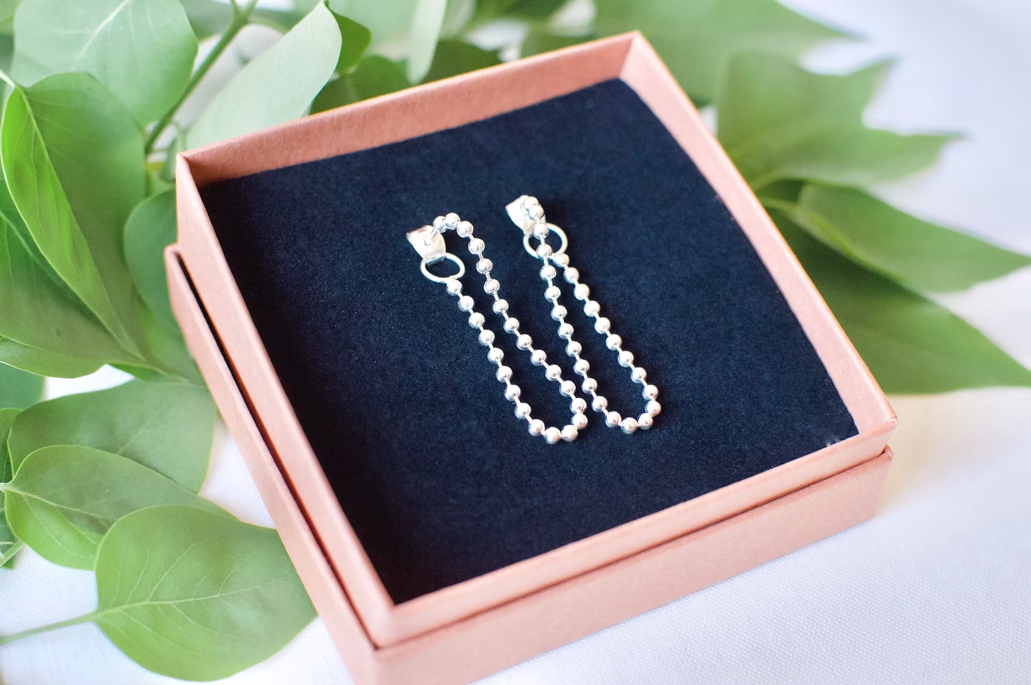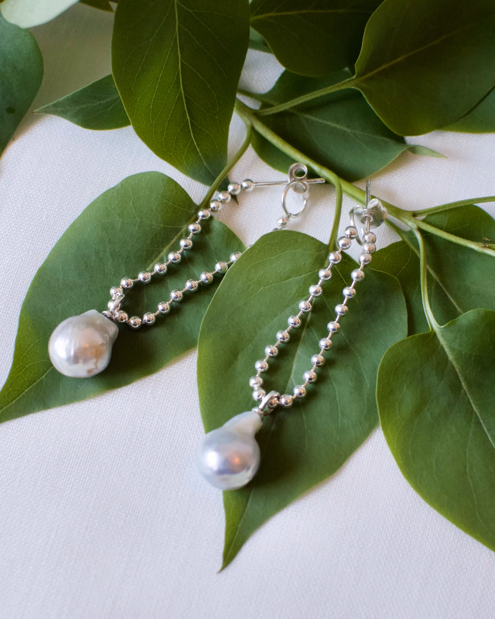 Rörliga örhängen med kulkedja som håller fast snurrebus så du slipper tappar bort de. Kan bäras på olika sätt med eller utan hängen, passar någon med lekfull personlighet. Köp med avtagbara pärlorna för ännu mer flexibla användning.