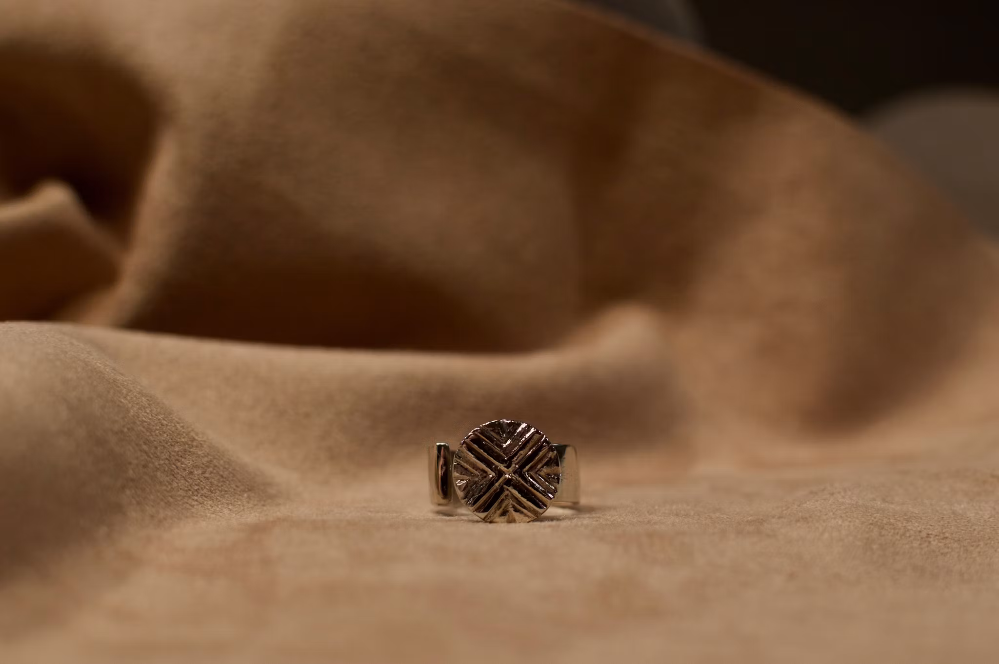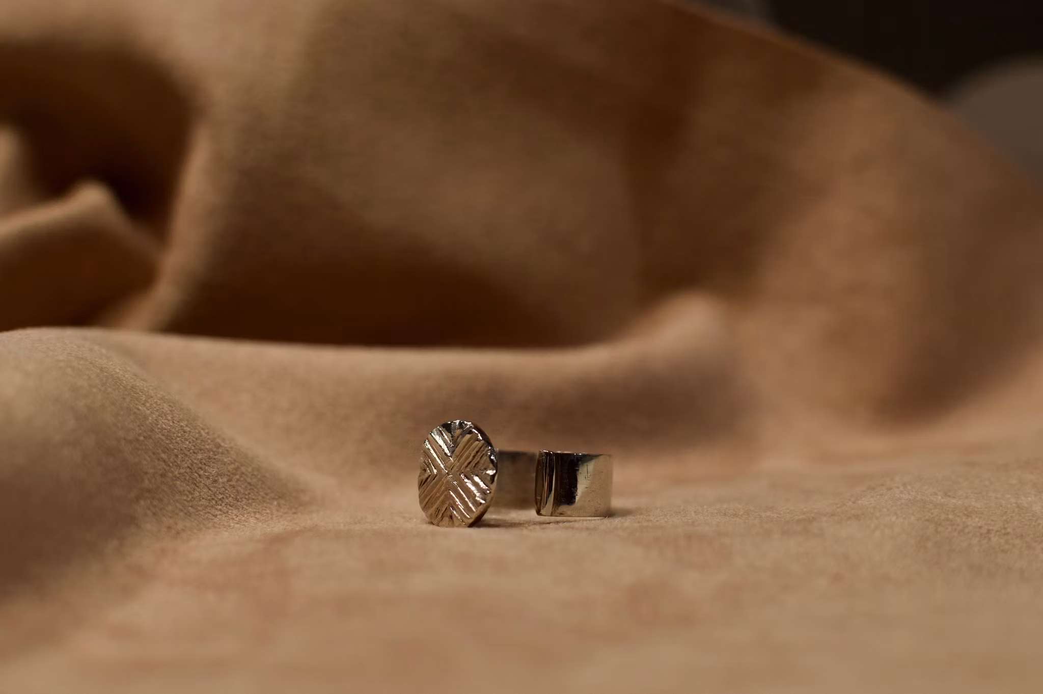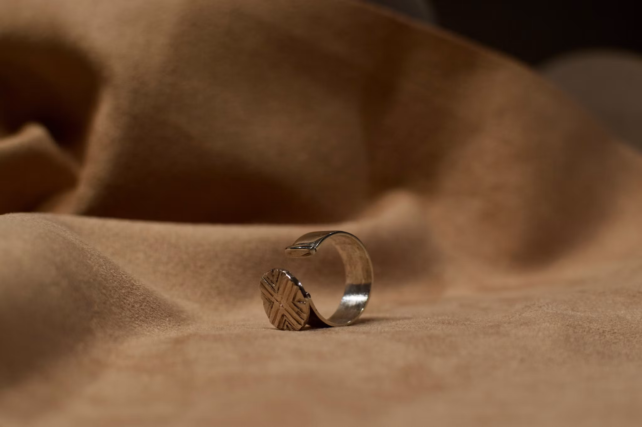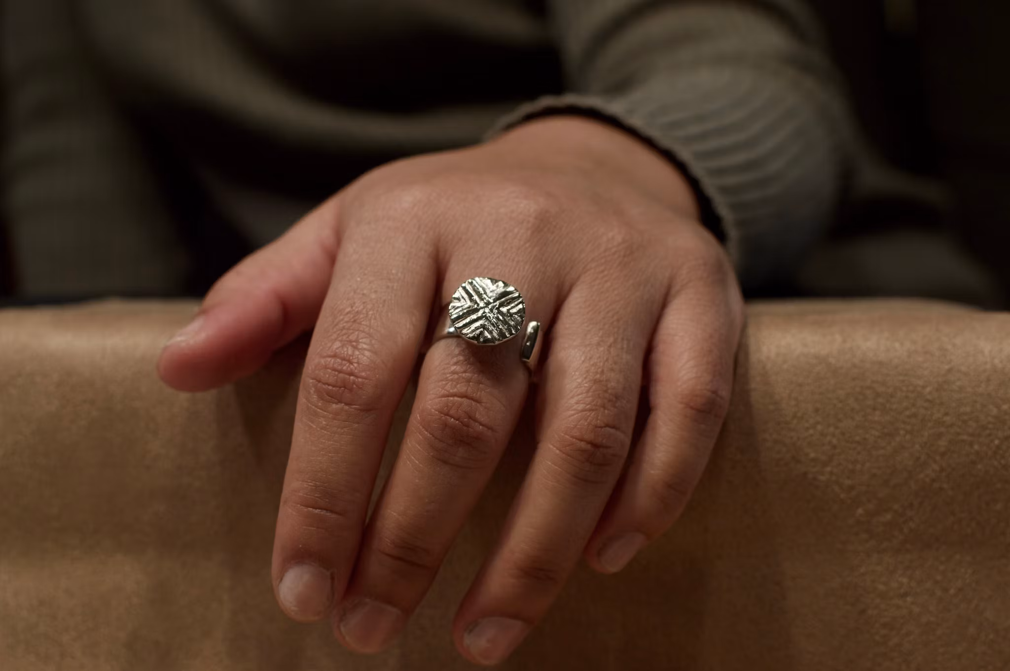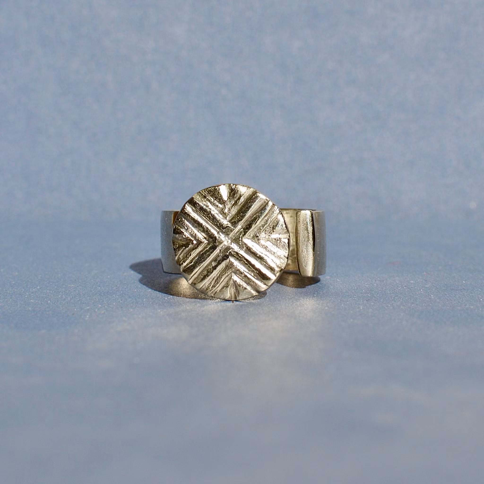 En öppen ring inspirerad av Chin-etnisk mönster och armband, därav namnet. Mått: 10x1,5mm.