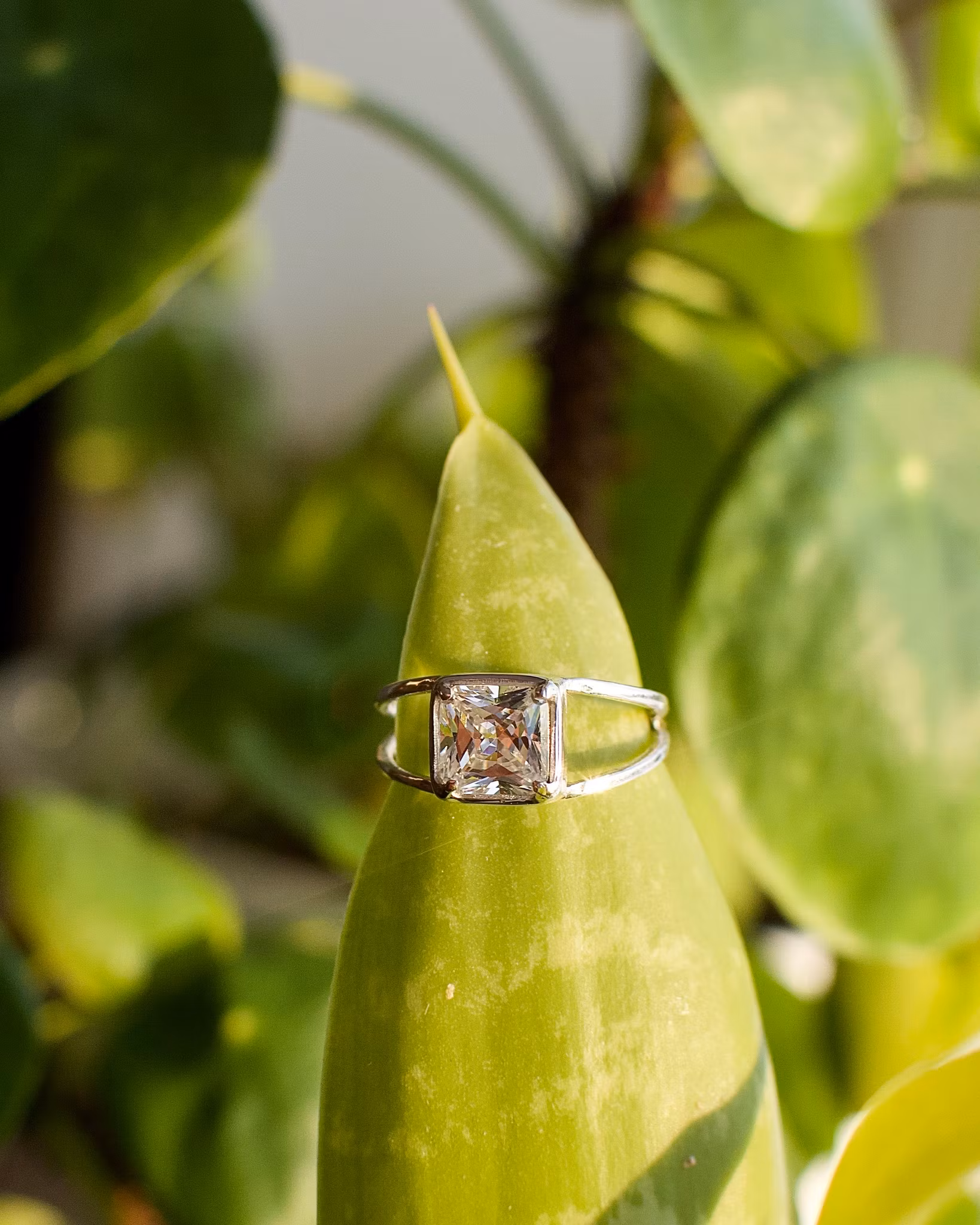 En pampig ring i sterling silver med en vit sten av cukisk zirkonia 10x10mm.