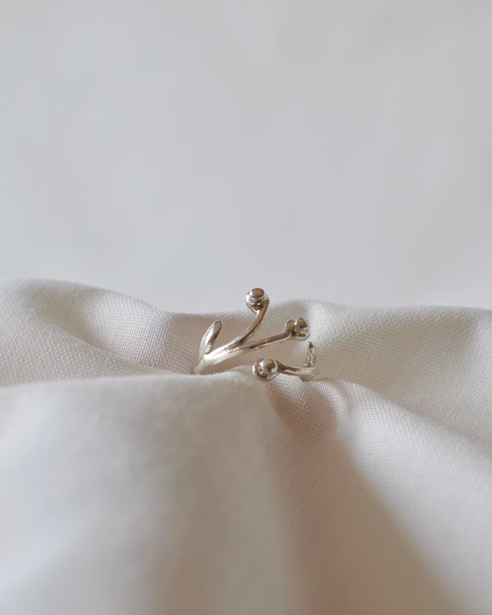 En öppen ring inspirerad av liljekonvalj i en nät och smal design. Passar perfekt som present till då det går att justera storleken och är otroligt bekvämt att bära den.