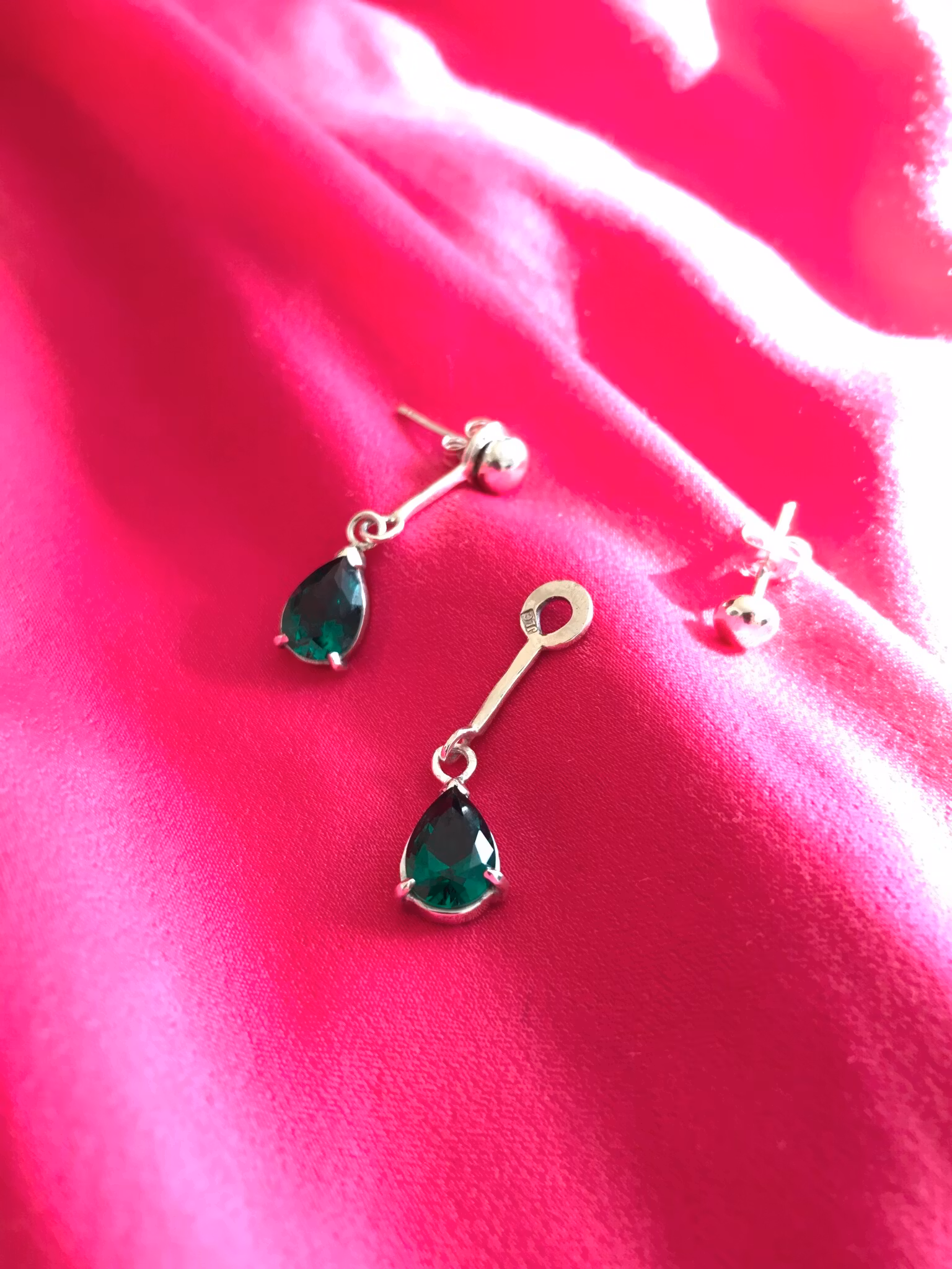 Handgjorda av återvunnet sterling silver och stenarna är laboratorie tillverkade ”syntetisk smaragd”.