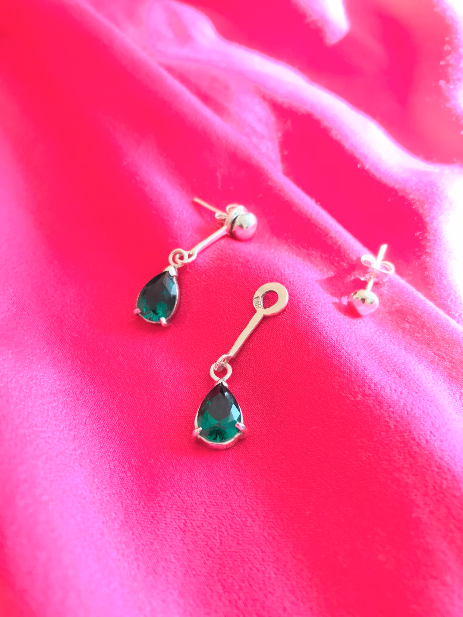 Avtagbara och flexibla örhängen i stilrent och tidlös design. Silver kulorna kan du använda med eller utan gröna hängen. Hängena kan även användas tillsammans med andra stiftörhängen. Ett par örhängen som du kan ha många användning av både till vardag och fest.