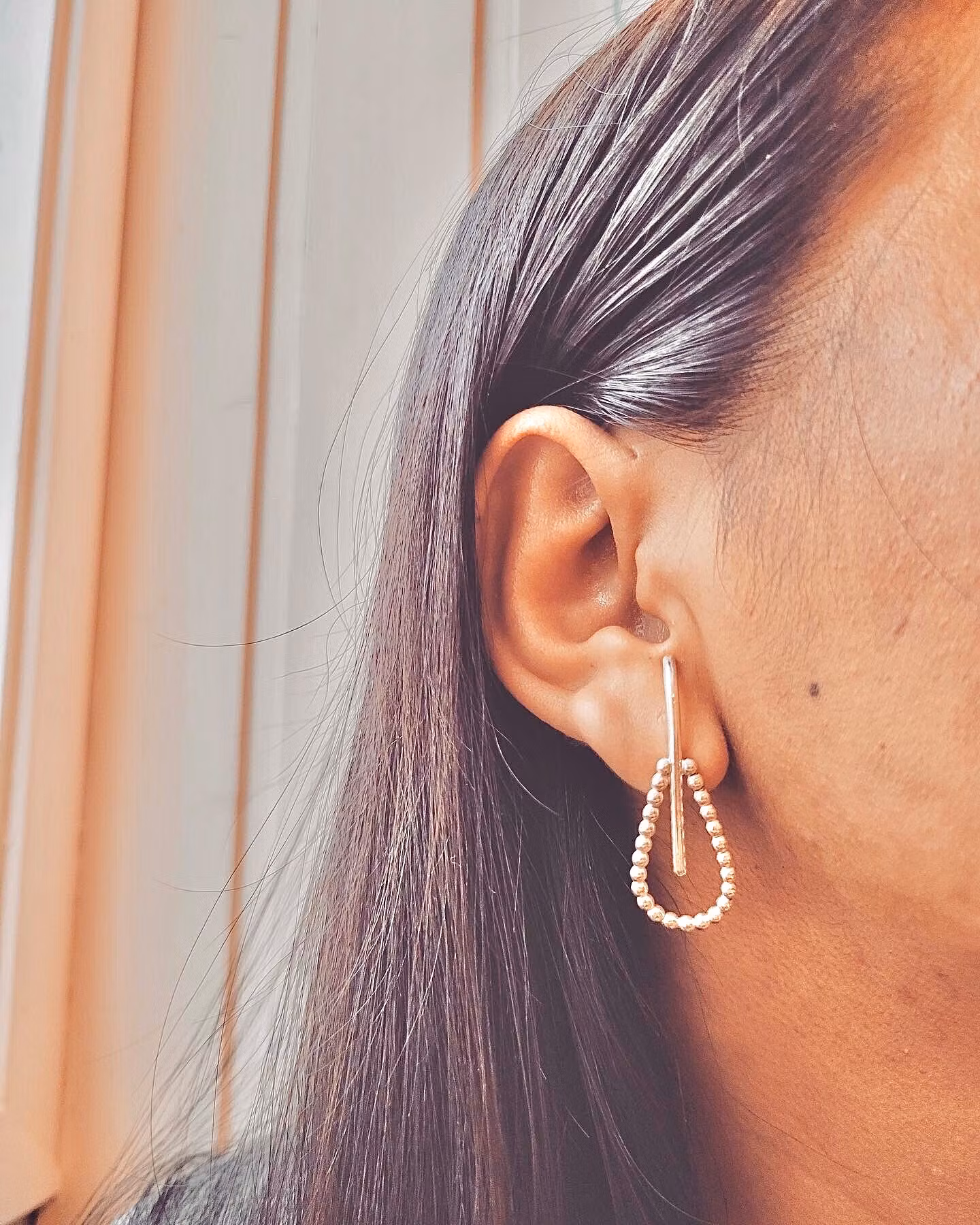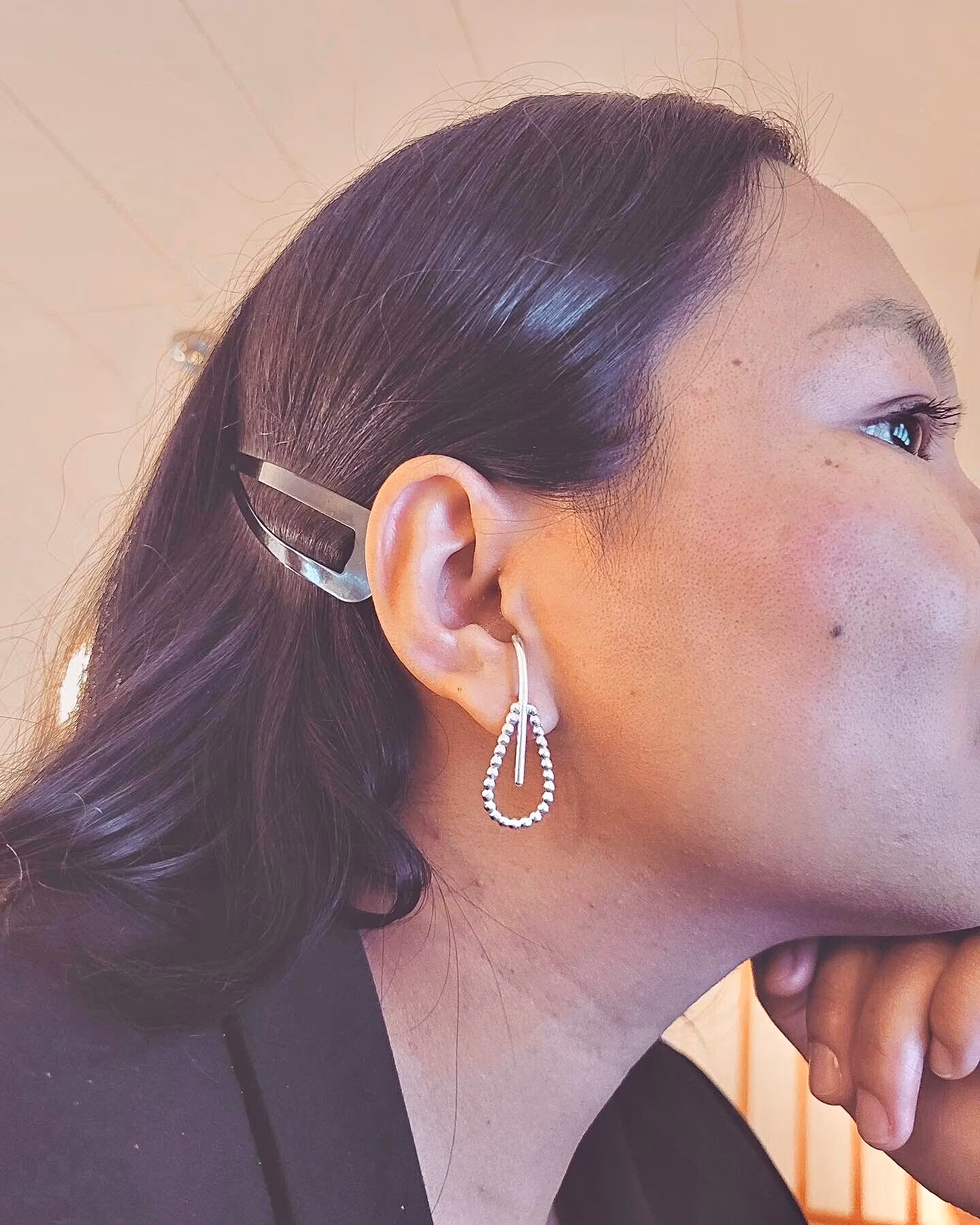 Vintage inspirerad örhängen med modernt tolkning. De är stela och kommer därför inte hänga runt. Pinnen går ända upp till hålet i öronen vilket ger tuffare look. Material: återvunnen sterling silver.