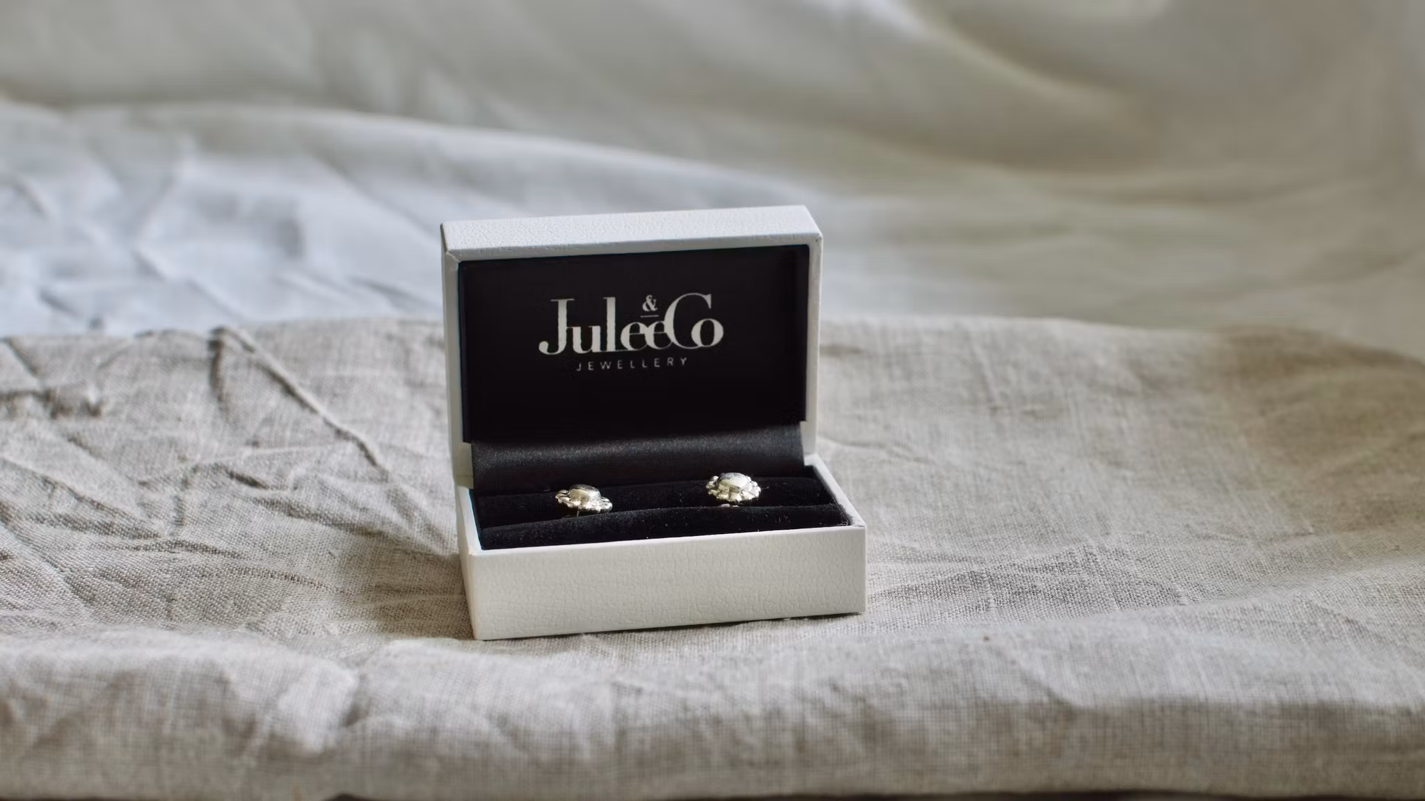 Stift örhängen av smälta silverkulor, inspirerad av solrosor. Handgjorda örhängen man kan ha varje dag, alltid tillverkad av återvunnet sterling silver.