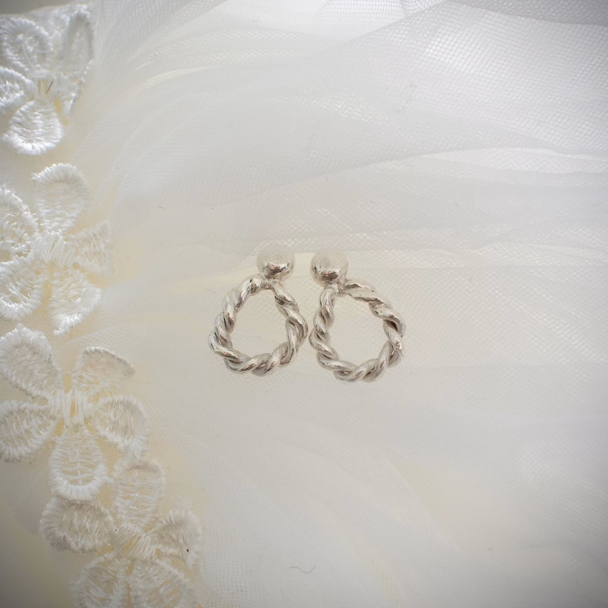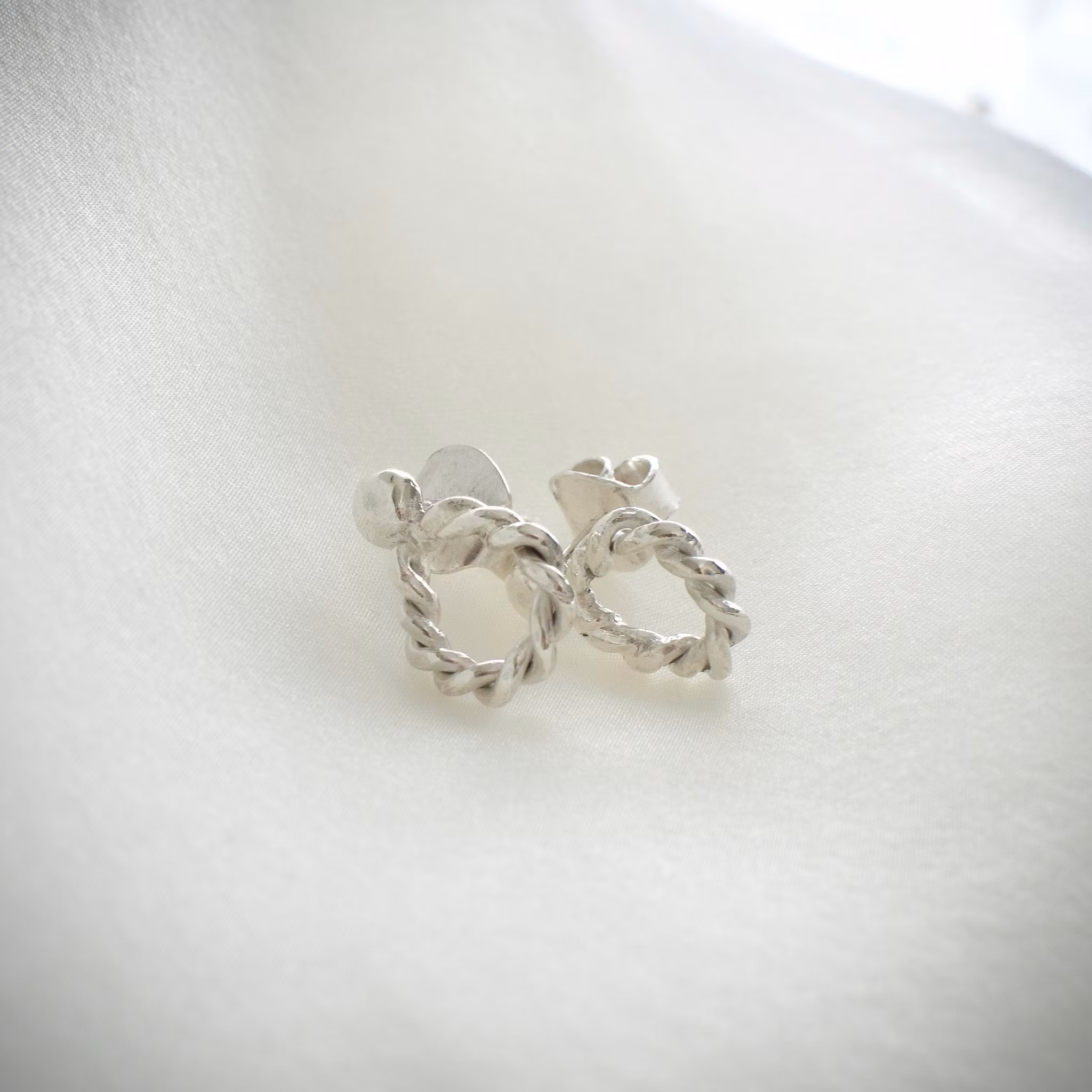 Ett par drop formade örhängen i silver med flätade detaljer som passar till varje tillfälle.