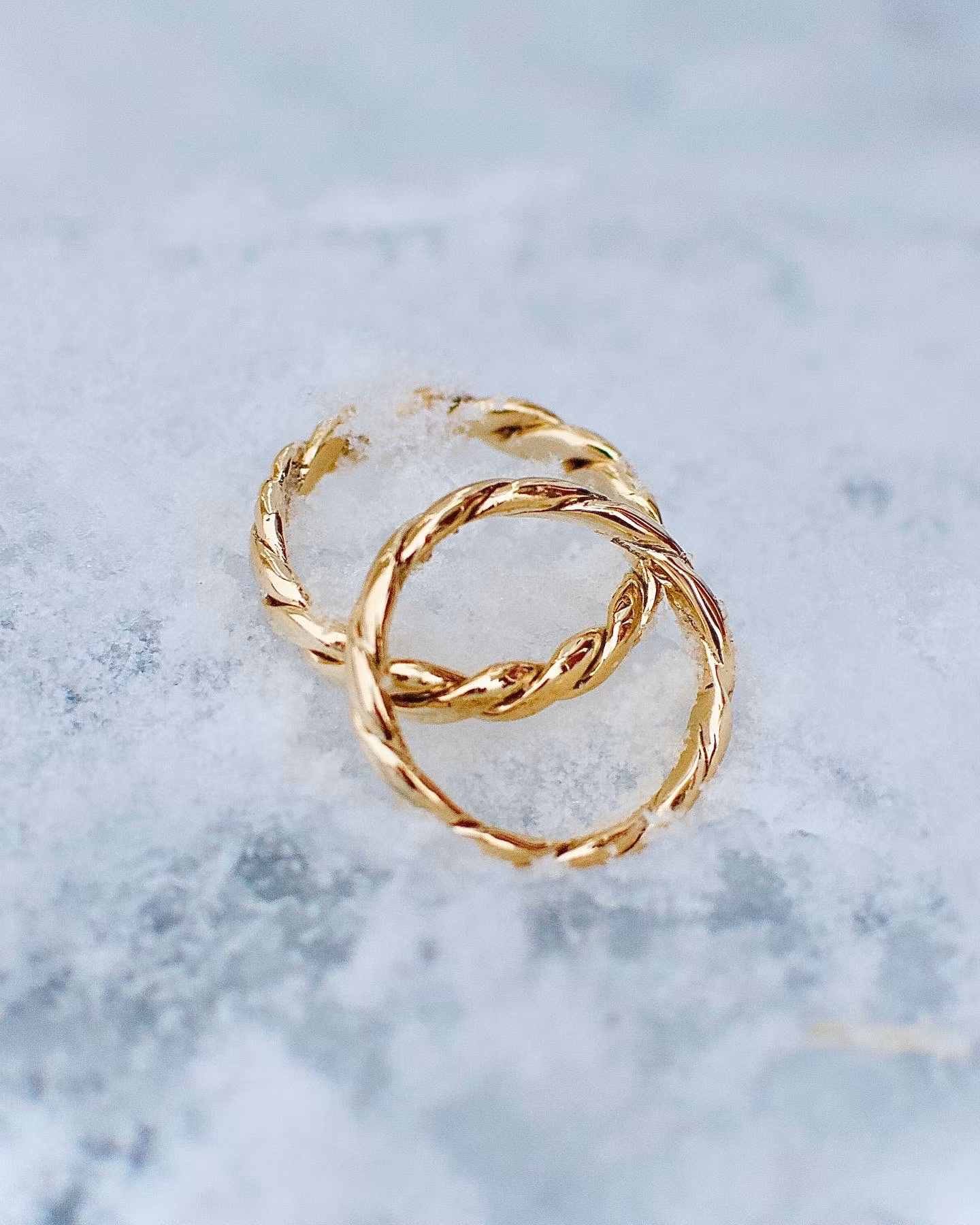 Tvinnad ring av två guldtrådar. En påminnelse om att vi är starkare tillsammans. "Ensam är stark men tillsammans är vi starkare". Mått: ca 4x1,8mm.
