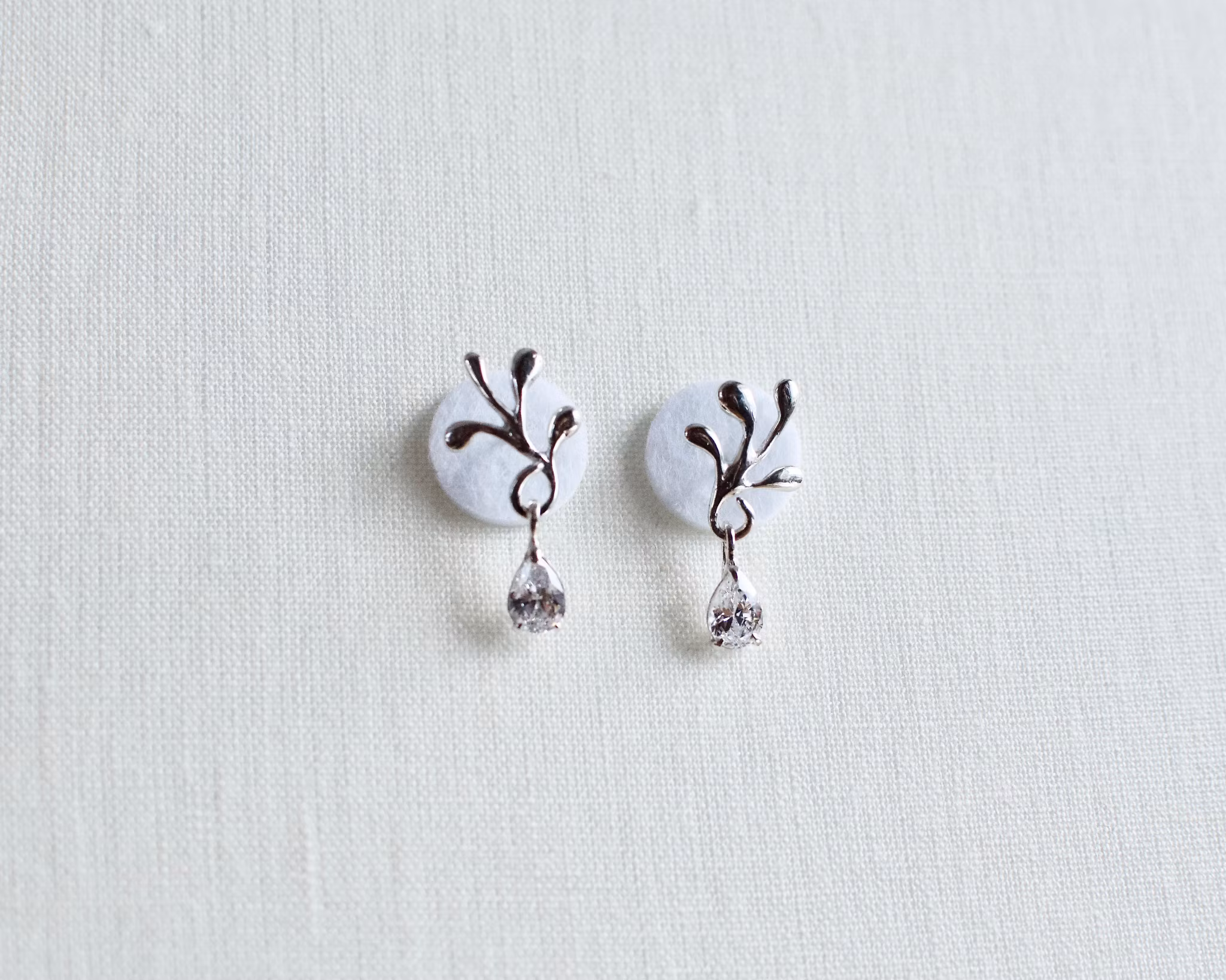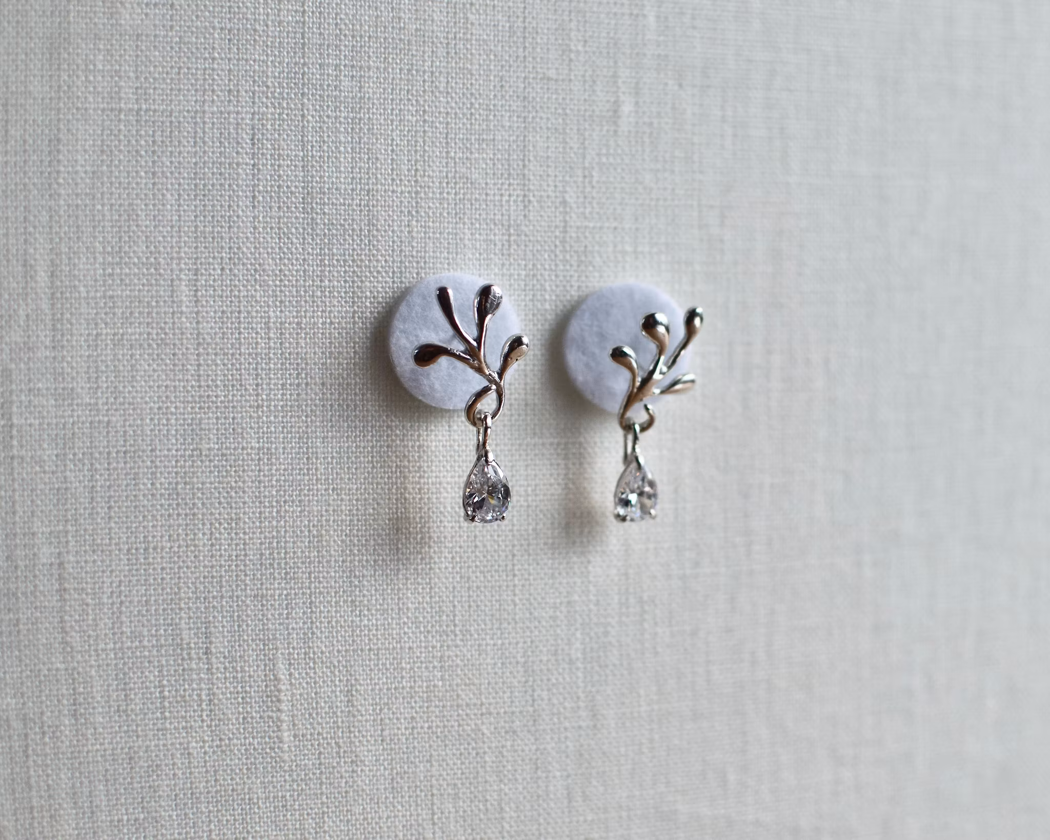 Örhängen inspirerad av vackra grenar med avtagbara hängen av vita stenar i kubisk zirkonia. Örhängen är lika fint att bära med eller utan hängena för variation. Pampigt bröllopspresent, examenspresent eller som årsdags present.